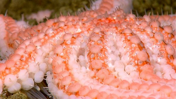 这只有十个腕的海星是遥控操纵潜水器在大约880英尺(约合270米)的海洋深处发现的。大多数海星种类有五个腕。据美国国家海洋与大气管理局专家介绍,美印联合探险任务代表着“全新的海洋探索模式”,因为陆地的科学家和海上的技术人员可以通过卫星和“俄刻阿洛斯探险者”号上的高速网络连接实时地建立联系。