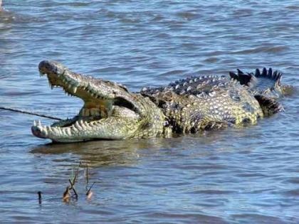 捕猎过程中,咸水鳄纯以强大的力量取胜,它们能够将水牛强行拖下水,有时也会向人类发动袭击。它们首先利用力量强大的颚咬住猎物,而后利用所谓的“死亡翻滚”将猎物拖入水中。“死亡翻滚”同样可以将大型动物撒成两半。