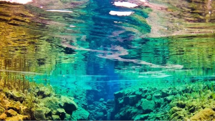 如果再下潜到 Thingvellir Lake,能见度达100米,可以随时喝一口至清至纯的冰川水。由于冰川水终年只有2至4度,如此低温是没有浮游生物的,因此,所有鱼都游到较暖的水域觅食了。